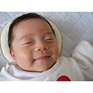 「寝ながら微笑む我が子」